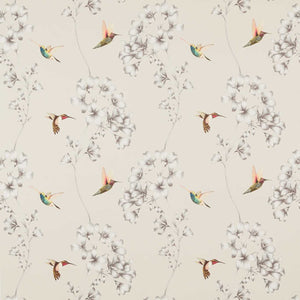 A combination of hand-drawn botanical etchings and beautifully coloured hummingbirds adorn this graceful fabric, from deep Indigo blues to soft Powder pinks.