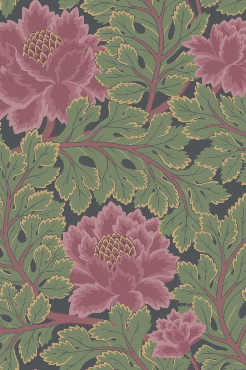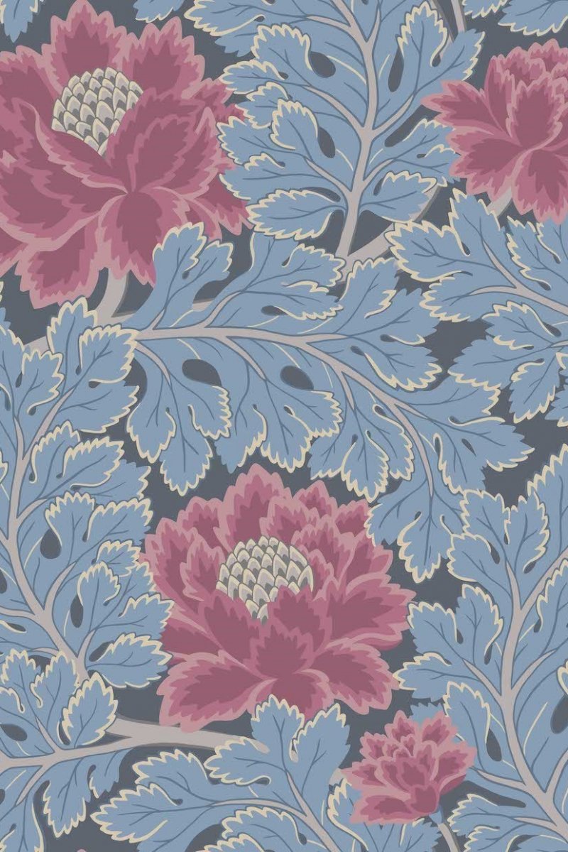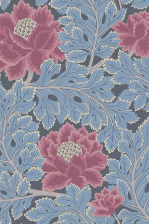Immerse your space in the serene elegance of the Aurora wallpaper by Cole & Son, featuring an exquisite array of botanic splendour. The wallpaper is adorned with lush, oversized peonies in rich shades of pink, set against a backdrop of pale blue foliage that offers a refreshing contrast. Anchored on a deep navy canvas, this colourway invites a soothing yet sophisticated atmosphere into any room. The artful line work and delicate shading of the petals and leaves evoke a sense of classic charm with a modern twist.