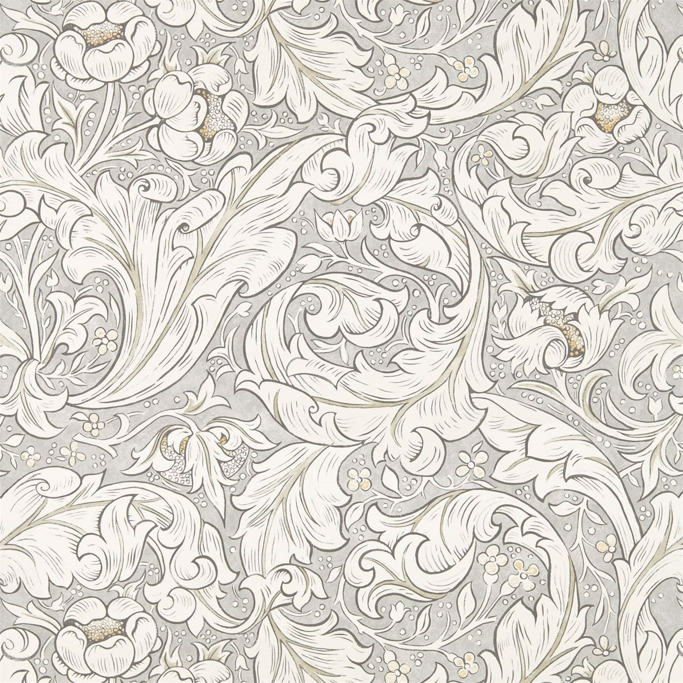 Dramatic swirling leaves coil around on this monochrome wallpaper design. The Morris & Co. studio enlarged the original, created in 1892, and painted it in the style of medieval frescos with dramatic effect creating a show stopping, 140cm width wallpaper. Also available as a printed fabric and woven cloth. Recommended Paste: Elite Ready Mixed Tub Paste