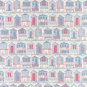 This cotton-mix fabric, featuring iconic beach huts in all their glorious shapes and sizes, help us reminisce about childhood days spent at the British seaside. Originally lino-printed and drawn over for added definition, this design is available in relaxing colourways and as a wallpaper of the same name.