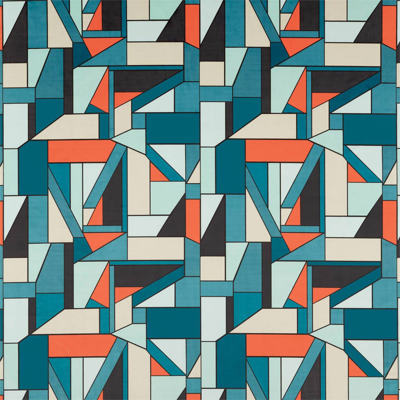 This bold uplifting design of architecturally inspired geometrics is printed on a sumptuous velvet giving a lovely soft feel.