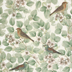 A beautiful and delicate wallpaper with a vintage style finish. This wallpaper design features birds perching against a trail of beautifully adorned branches with white blossoms. A design full of character and charm, finished with vintage effect the wallpaper that will look great as a feature wall in a living room or bedroom. Each roll of paper is handcrafted in design to give an elegant and clean look to any wall you choose to use it on.