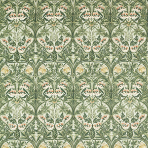 Perhaps one of the most endearing qualities of William Morris was his love for ordinary flowers, native to the UK. Bluebell is an 1876 design that takes as its subject the charming, but common, bluebell flower. Morris`s design is a richly packed symmetrical arrangement and continues his tradition of naming the design after the secondary flower. Framed by bold acanthus leaves and entwined by larger foliage, the humble bluebell weaves this design together like it does the forest floor in spring.