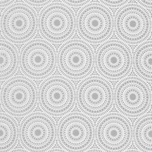 Paloma Fabrics - Cadencia. This woven jacquard fabric features large interlocking lace-inspired circles In matt and sheen finishes. Use for curtains or drapes, alongside the wallpaper of the same name.