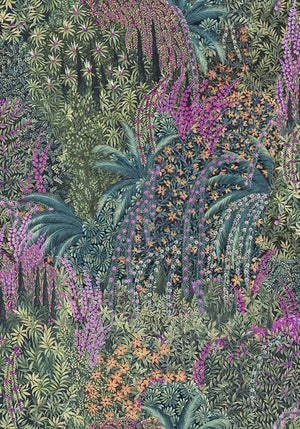 Cascade's dense canopy of bursting florals and foliage sits in complement to Reverie's expansive scene. Each palette is an explosion of colour, naturally radiant and defiantly bright. Zesty greens are punctuated with vibrant marigolds and magenta, whilst facets of sapphire and forget-me-not are balanced with coral and violet, creating an effervescent and radiant all-over print.