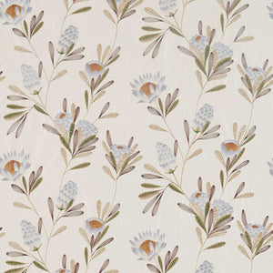 Zapara Fabrics - Cayo. This lively embroidered fabric features a floral trail on a silk effect ground in both vibrant and restful colourways. Ideal for curtains and blinds, or teamed with the wallpaper of the same name.