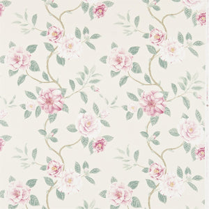Christabel A Camellia in full bloom on a gently undulating stem has been printed to capture the rich watercolour tonality of botanical paintings. This design is also available as wallpaper.
