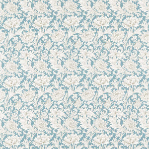 Chrysanthemum was originally designed as a wallpaper by William Morris in 1877 with winding blooms against a foliage background. In this toile interpretation, elegant linework enhances the detail and form of the original pattern, recoloured here to sit alongside the Simply Morris collection.