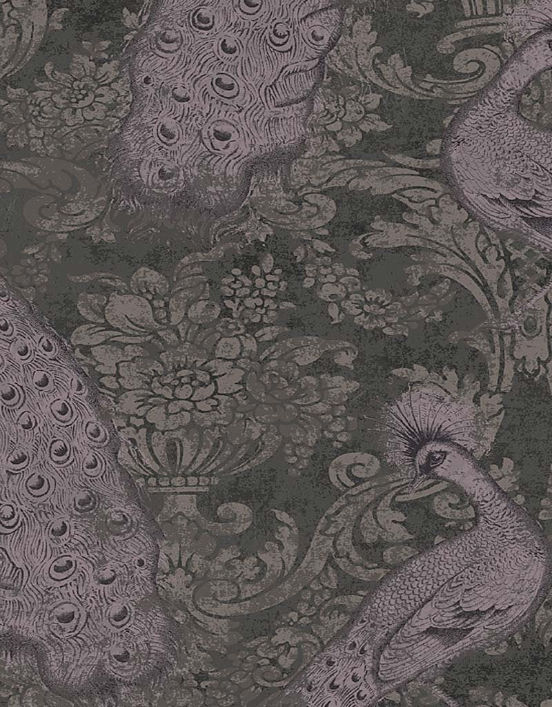 Unveil a touch of stately elegance with the Cole and Son Byron wallpaper, showcasing an exquisite colourway of muted charcoals and greys. This unique design features majestic peacocks perched amongst an intricate floral backdrop, with their detailed plumage adding a luxurious texture to the piece. Its sophisticated palette blends effortlessly into both contemporary and traditional decors, making it a delightful choice for those seeking to infuse their space with timeless grandeur and a hint of natural beauty.