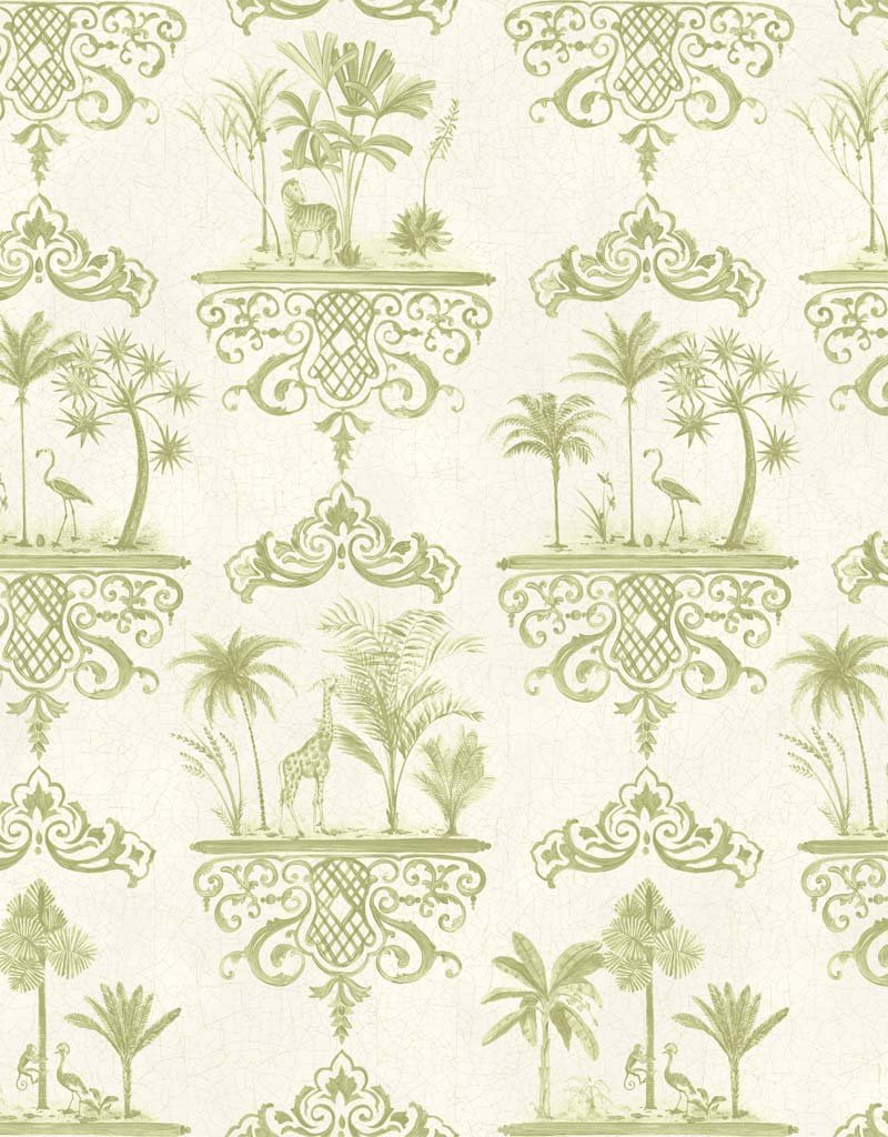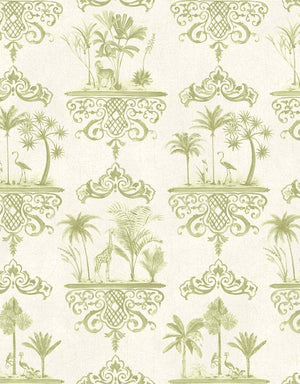 Elevate your space with the enchanting Cole and Son Rousseau Wallpaper, dressed in a serene ivory and olive colourway. This design features a whimsical motif of exotic animals and lush flora, communing amidst ornate damask patterns. Each panel is an artwork that evokes the mystery of a tropical paradise, rendered with a gentle palette that brings both warmth and sophistication to an interior. Perfect for adding an element of genteel elegance and worldly charm to your home.