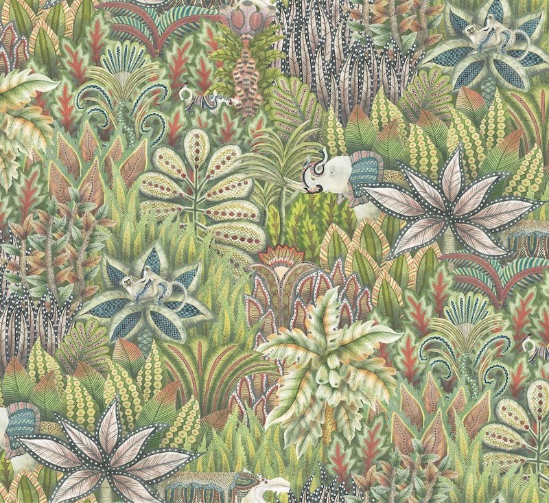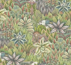 Infuse your space with the intricate and lush designs of the Cole and Son Singita Wallpaper. This wallcovering boasts a rich tapestry of flora in verdant greens, accented by subtle touches of red, pink, and a symphony of neutral tones. The hand-drawn style lends a whimsical charm, capturing a dense jungle scene that is both captivating and elegant. Each ornate frond and hidden creature offers a story, making it more than just a wallpaper, but a gateway to an exotic escape.
