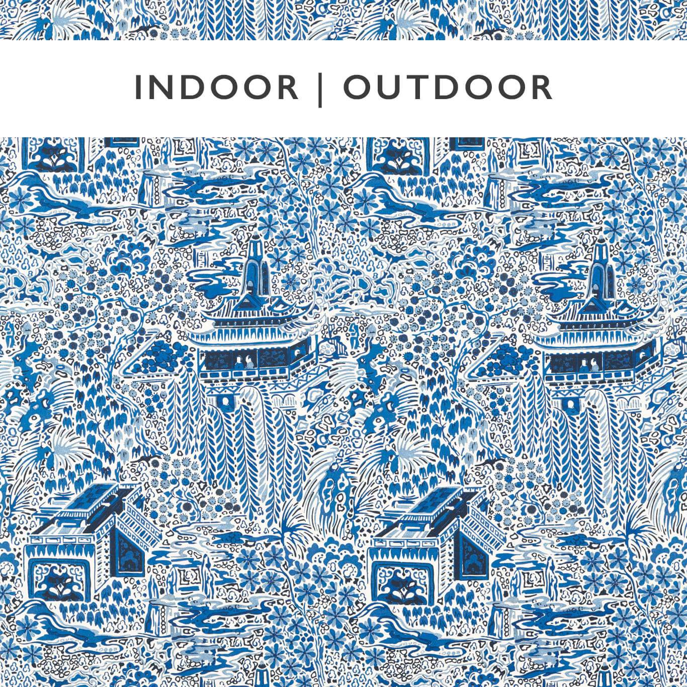 Traditional Japanese buildings nestle among beautiful swaying willow trees in this simple tonal design, a modern interpretation of willows in the wind.