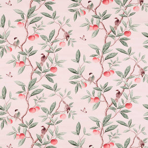 This beautiful cotton/linen is a sleek interpretation of an antique chinoiserie wallpaper, depicting stylised birds and ripe fruits. A modern take on a traditional panoramic scene, it`s been reinterpreted into a repeating pattern, where less is more. The focus is on the design`s almost 3D leaves and hand brushed wash effect ground, that`s crafted to look like the sky.