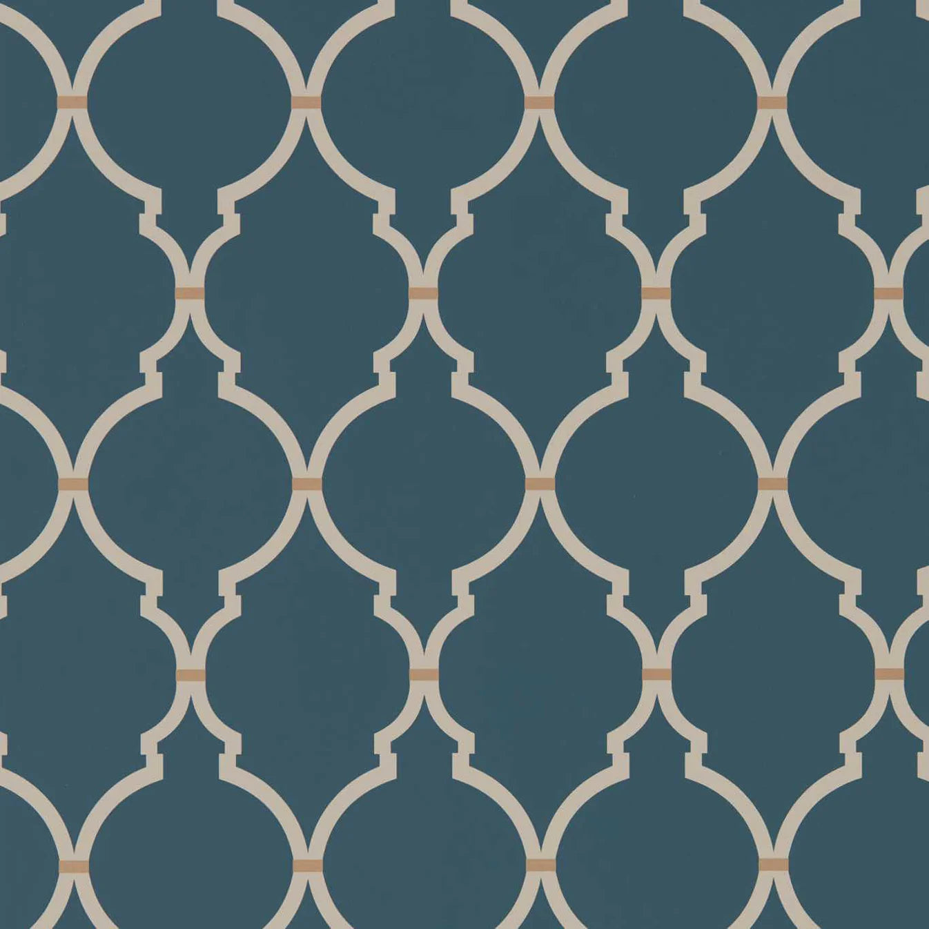 Empire Trellis Indigo/Linen Wallpaper DART216338 by Sanderson - Clearance
