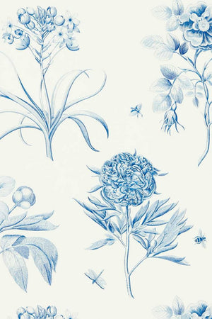 Introduce timeless elegance to your space with the Etchings & Roses wallpaper by Sanderson, boasting a serene blue and white colourway. This design features a collection of meticulously etched florals and lush greenery, accompanied by delicate butterflies, evoking a sense of a tranquil English garden. The refined detail and soft colour palette create a soothing backdrop, ideal for both traditional and contemporary interiors seeking a touch of classic charm.