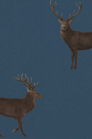 Immerse your space in the stately grandeur of the countryside with the Evesham Deer wallpaper by Sanderson. This sophisticated paper showcases a striking navy blue background, providing a rich canvas for the meticulously detailed brown deer motifs. The graceful stature of the deer, coupled with their elegant antlers, imparts a sense of serene nobility. Perfect for adding a touch of classic woodland charm, this design is sure to elevate the ambiance of any room.