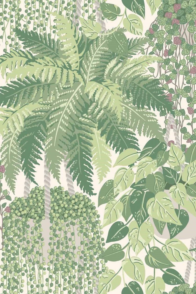 Embrace nature's serenity with the charming Fern wallpaper by Cole & Son, exquisitely presenting a soft, pastel colourway that evokes a tranquil ambiance. This design features an array of green hues, from delicate sage to deeper fern tones, combined with understated pink and white accents that add a touch of warmth. The detailed depiction of ferns, string of pearls, and other botanicals lends a refreshing dimension and texture, making it an elegant addition to any space seeking a touch of the outdoors.