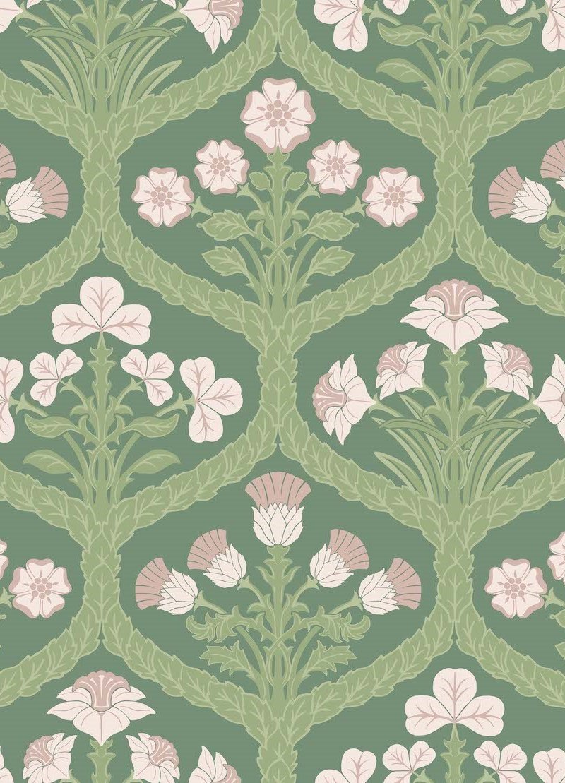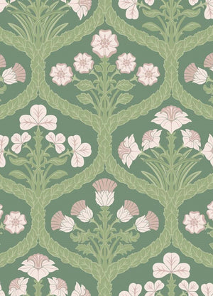 Immerse any space in the elegance of nature with Floral Kingdom wallpaper by Cole & Son. This lush design features an olive-green background, accentuated with blush and off-white floral motifs. The stylised foliage and symmetrical blossoms create a harmonious pattern, ideal for bringing a touch of sophistication and tranquillity to interiors. It offers timeless appeal, perfect for creating an enchanting, serene environment with a classic yet contemporary twist.