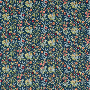 Beguiling, jewel-like colours bring to life a startling array of meadow flowers set against a deep midnight indigo. A design of incredible detail and beauty, Flowers By May originally adorned the seat of a 17th century chair which once stood in the library of William Morris. Residing since his death in the home of his friend, neighbour and noted typographer, Sir Emery Walker, May Morris created the covered cushion with the dedication MM to EW. Flowers By May is a story about the creativity friendship can inspire, spanning even generations.