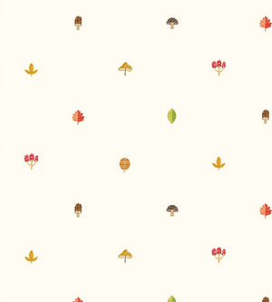 This contemporary design of hand drawn berries, toadstools and woodland leaves shares a magical charm. On an open ground it adds a freshness to bedrooms and playrooms.