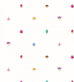 This contemporary design of hand drawn berries, toadstools and woodland leaves shares a magical charm. On an open ground it adds a freshness to bedrooms and playrooms.