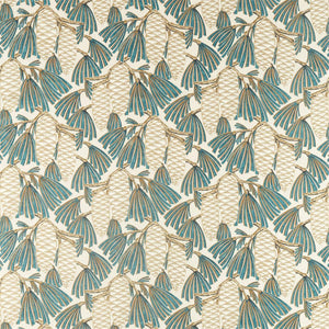 Salinas Prints And Weaves - Foxley. Derived from an original art deco wallpaper, this fabric features softly coloured pinecones have metallic highlights and stylised leaves. Printed on a lovely textured cloth and available in fresh colourways, it is suitable for blinds, cushions and curtains. A wallpaper of the same name is also available.