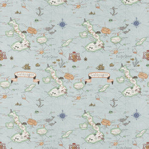 Galapagos depicts a vintage map of Darwins famous archipelago. This is however no ordinary map; upon closer inspection it comes to life with whimsical paintings of the islands wildlife and marine life. This design is also available as wallpaper.