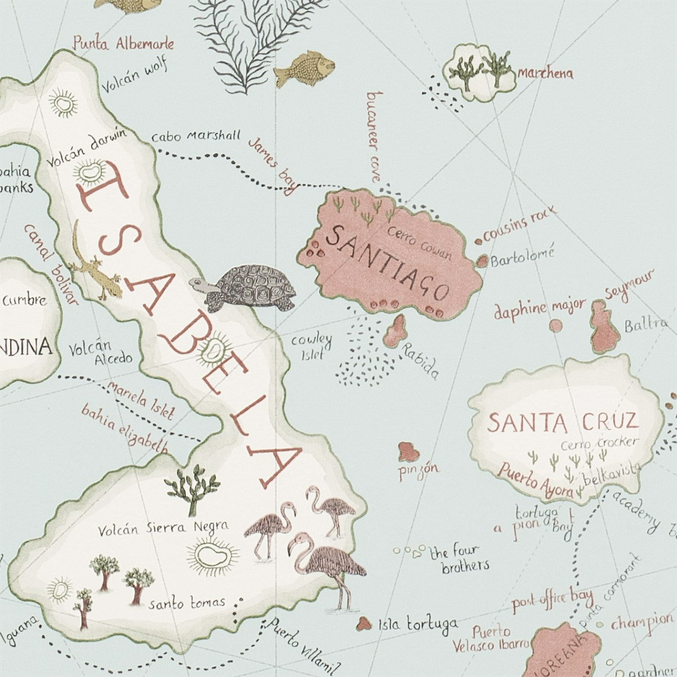 Galapagos depicts a vintage map of Darwins famous archipelago. This is however no ordinary map; upon closer inspection it comes to life with whimsical paintings of the islands wildlife and marine life. This design is also available as a printed fabric in Recommended Paste Elite Ready Mixed Tub Paste. Paste the Wall
