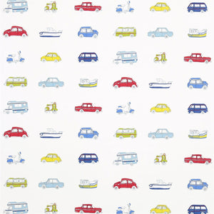 A cleverly drawn collaboration of cars, scooters and camper vans.