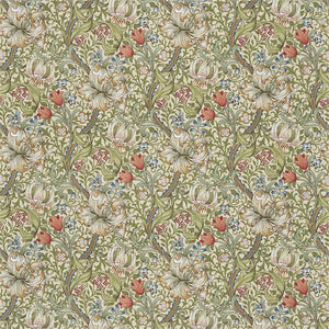 Entwined lily stems and tendrils are arrange along a strong diagonal and designed by J.H. Dearles in 1899. One of the greatest legacies of Morris & Co. this cotton-linen blend fabric is printed in a delicate colourway. A wallpaper of the same design is also available.