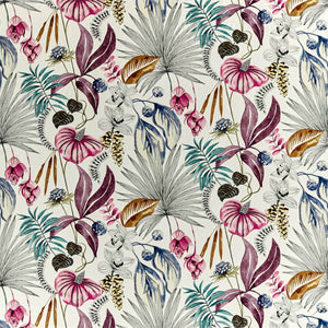 Introduce a summery vibe with this all-over print of Ibizan inspired orchids, tropical leaves and palms. An excellent colour carrier, use Habanera as the main focus of a scheme, pulling out favourite colours and accessorising in complementary tones.