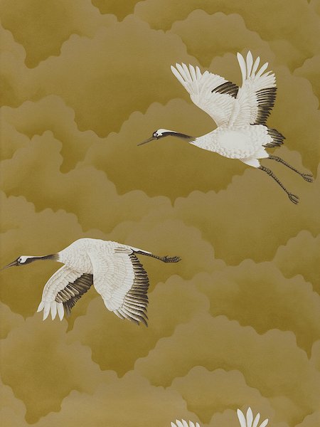 Adorn your walls with the elegance of the Harlequin Cranes In Flight Wallpaper, featuring a rich mustard colourway that adds warmth and depth to any room. Captured mid-flight, the cranes are intricately patterned, their white and black plumage contrasting beautifully against the amorphous, cloud-like background. This wallpaper brings a touch of nature’s grace to your interior, creating a serene atmosphere with a hint of luxury and timeless style.