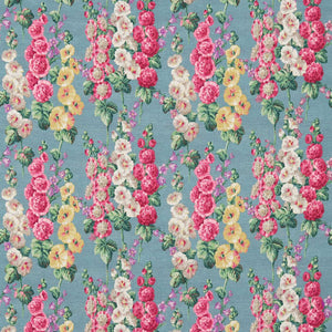 Hollyhocks Petrol Blue/Multi Fabric By Sanderson