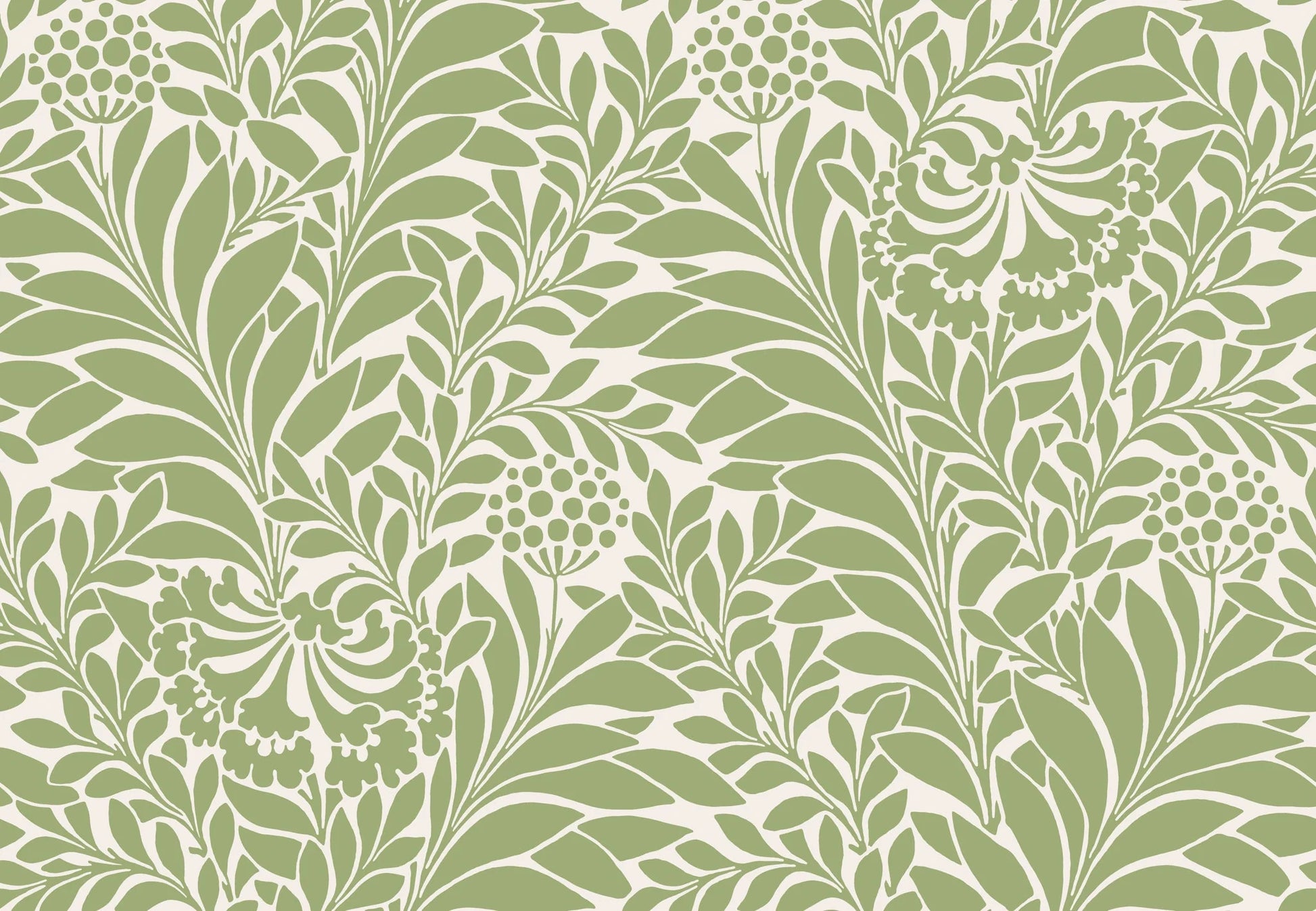 Honeysuckle, graphic print creates a sweetness in simplicity, immersing your walls in the classic, chalky hues of this headily fragranced shrub. Organic Spring Green and ripe Raspberry hues are tempered by sunny Daffodils, Blush-toned corals, and the cotton softness of Cornflower Blue.