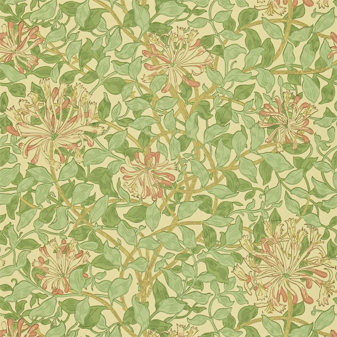 Honeysuckle Green/Beige/Pink Wallpaper DMCW210435 by Morris & Co