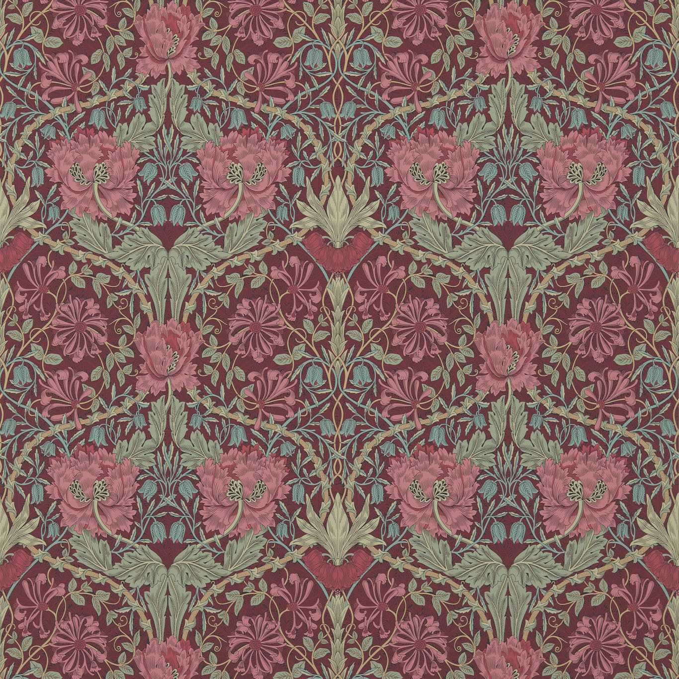 Honeysuckle & Tulip Burgundy/Sage Wallpaper DM3W214703 by Morris & Co
