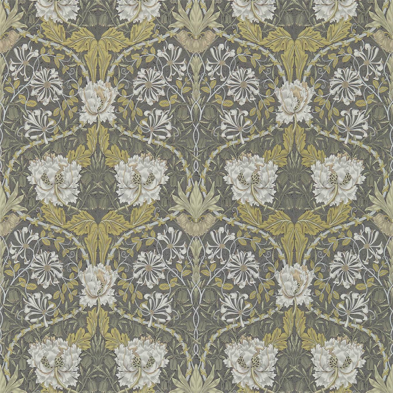 Honeysuckle & Tulip Charcoal/Gold Wallpaper DCMW216827 by Morris & Co