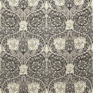 First produced in 1876 Honeysuckle & Tulip is an early Morris fabric design depicting entwined foliage and flower motifs in a mirrored pattern repeat. The effect is of a trellis circling large multi petalled tulips and stylised honeysuckle.