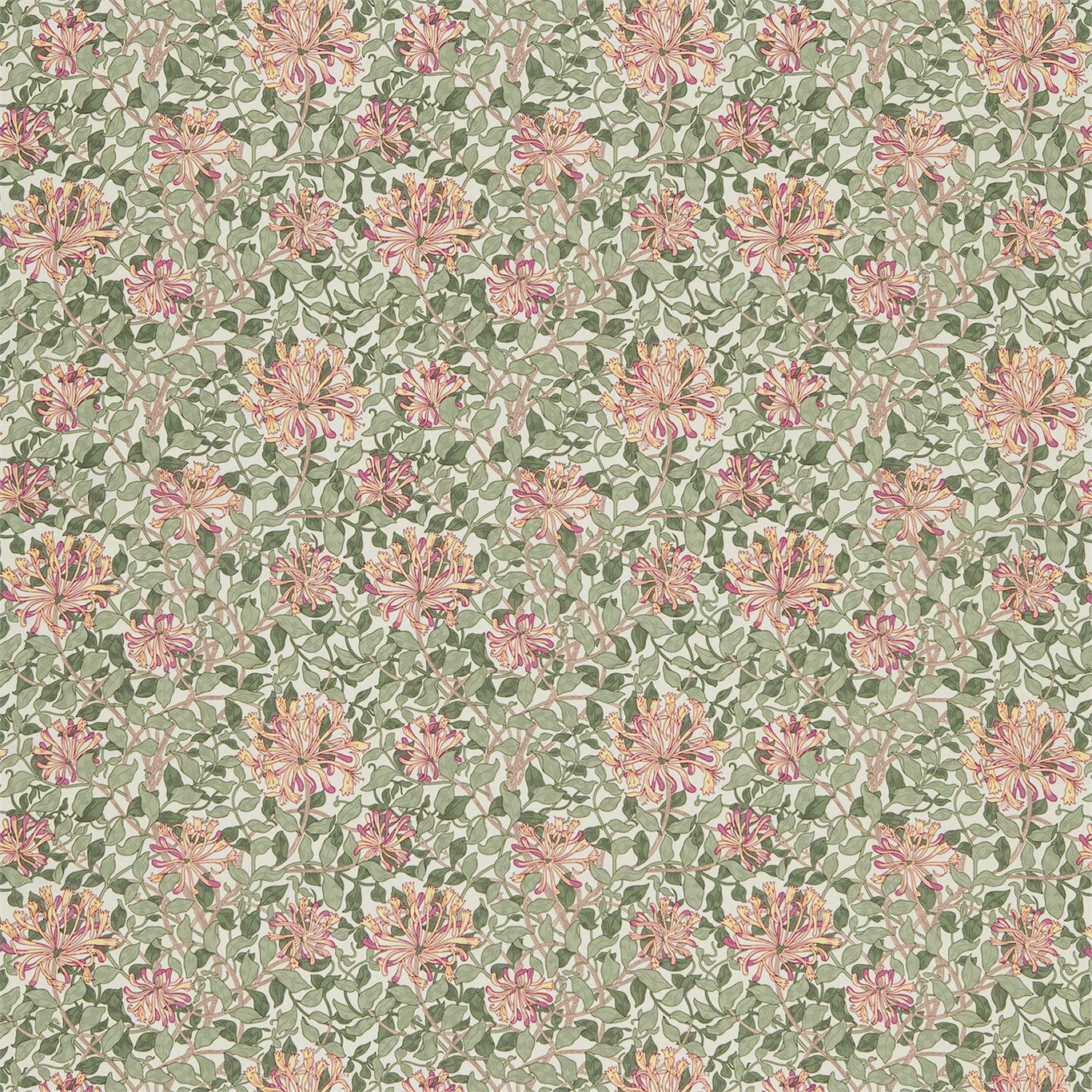 Honeysuckle designed by May Morris in 1883 is a realistic arrangement of rambling flowers and entwining leaves. Although best known for her work with embroidery Morris youngest daughter May also designed several wallpapers. Reproduced from samples in the Morris & Co. archive Honeysuckle is available in classic and naturalistic colourways on printed cotton.