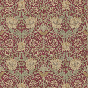 Honeysuckle & Tulip by Morris & Co. is a testament to timeless style and craftsmanship. With its rich palette of deep reds and earthy greens, highlighted by soft cream and subtle gold accents, this design exudes elegance. The harmonious interplay of flowering tulips and curling honeysuckle creates an enchanting symmetry, while the intricate botanical details and flowing foliage add a touch of Victorian sophistication. This exquisite pattern is sure to bring a classic yet cosy ambience to any interior.