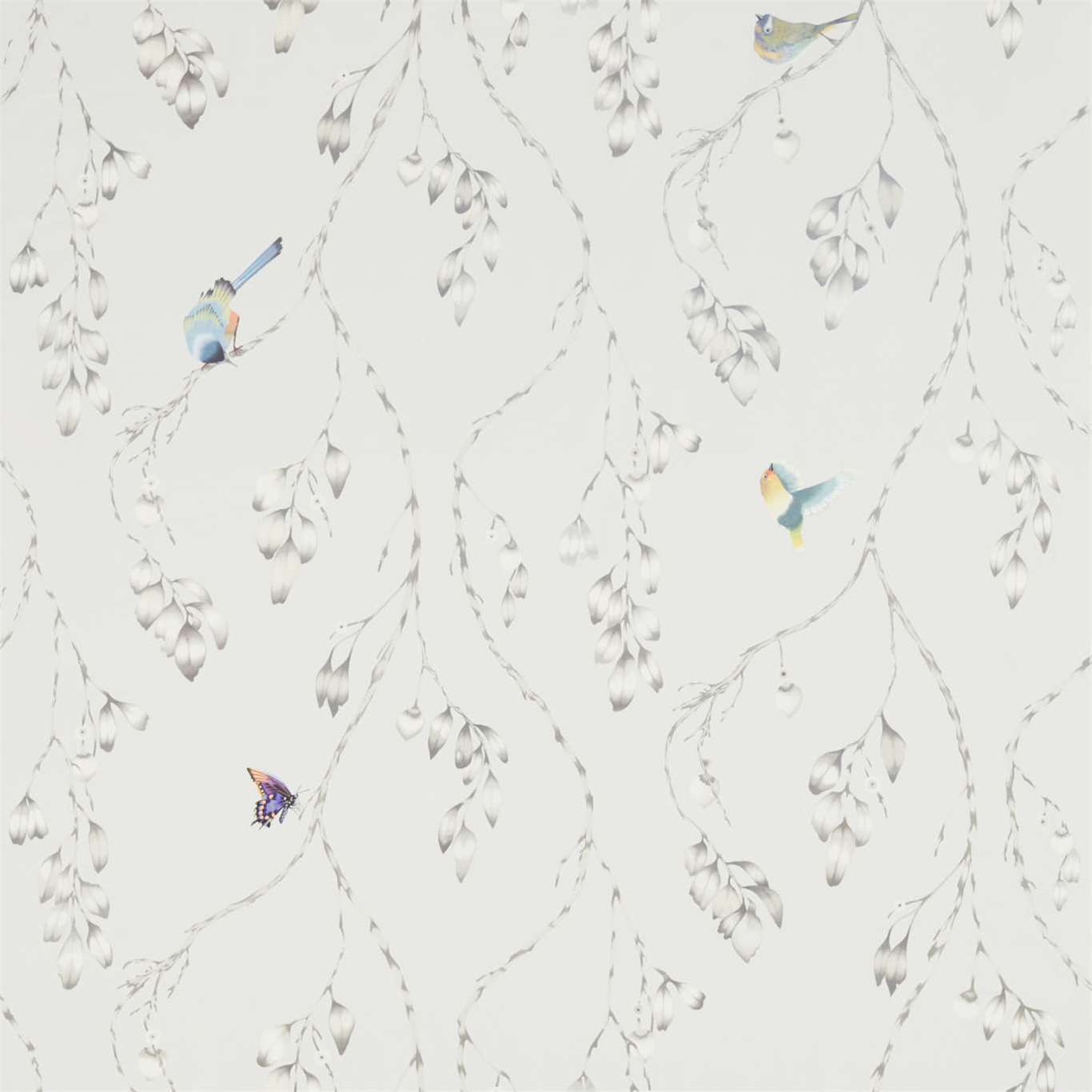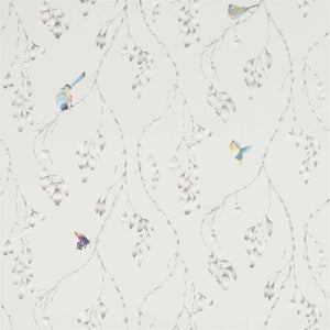 Zapara Fabrics - Iyanu. This graceful cotton fabric includes carefully etched butterflies and birds perching on willow-like branches in gentle colourways. A stunning choice for living rooms and suitable for light upholstery.