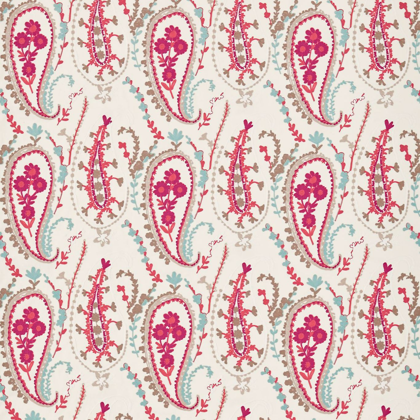Jamila Embroidery is based on a classic paisley format and is re-created using free flowing crewel work on an exquisite linen fabric base.