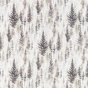 Inspired by Japanese watercolour artworks, this fabric design was originally painted in watery inks to capture the diffused mist that hangs over ancient forests. The conifer forest fades in and out across the design with twisting colours of dappled light.