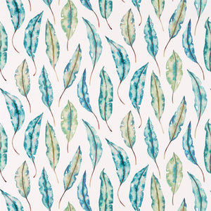 Anthozoa Fabrics - Kinina. Simplistic gumtree leaves were originally painted in watercolour and have been placed delicately on a plain background in this restful upholstery fabric design. Use it to fill rooms with light and team with the co-ordinating wallpaper.