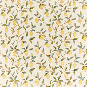 Inspired by the lemons in Fruit` one of William Morris`s most loved wallpapers Lemon Tree`s finely embroidered lemons share an exquisite level of detail. Trailing branches and delicate blossom create this fresh and calming design which displays a lovely drape. Available in a Bayleaf/Lemon colourway