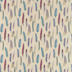 Elegantly spaced partridge feathers are placed geometrically on this linen-mix fabric and is suitable for drapes and upholstery. Available in lively colourways and as a wallpaper of the same name.