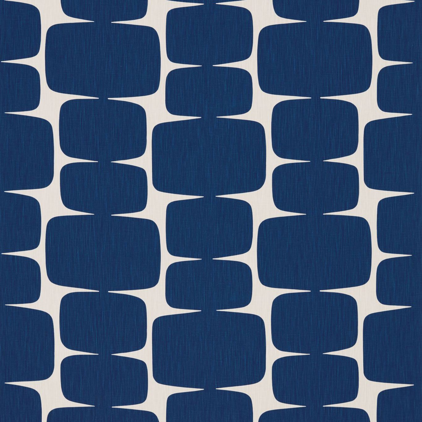 This oversized abstract cotton-linen mix fabric design, with flat interlocking boulder shapes, is available in bold colourways and looks striking on curtains, blinds and drapes . A wallpaper of the same name is also available.