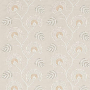 Paloma Fabrics - Louella. A modern floral trail embroidered fabric with leaves highlighted in metallic yarns in soothing colourways, creates the look of gentle movement on blinds and drapes. Team with the wallpaper of the same name.
