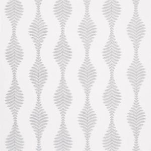 Paloma Fabrics - Lucielle. This versatile embroidery fabric with a modern leaf motif, creates a gentle geometric curve at a distance and looks stunning in an otherwise white room or alongside the wallpaper of the same name.