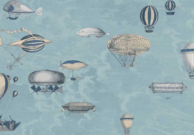 Immerse your space in the whimsical world of flight with the Macchine Volanti wallpaper by Cole & Son. With its serene blue colourway as the backdrop, this design features a charming collage of hot air balloons, blimps, and fantastical flying machines gently adrift. The intricate line drawings, reminiscent of Leonardo da Vinci's sketches, add a touch of classical elegance and vintage curiosity to any room, inspiring imagination and a sense of adventure in a subtle, sophisticated palette.